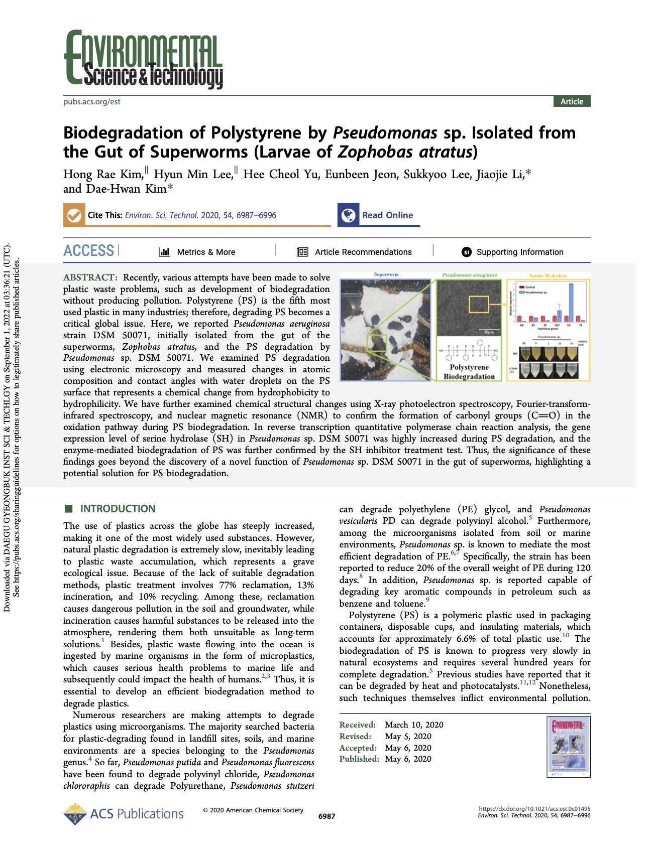 Biodegradation of Polystyrene by Pseudomonas sp. Isolated from the Gut of Superworms (Larvae of Zophobas atratus)