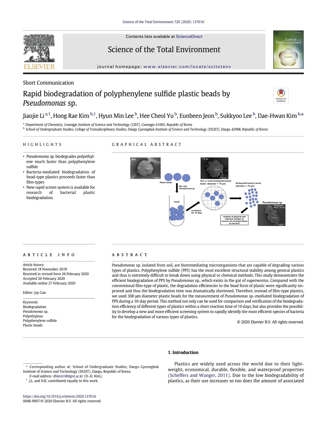 Rapid biodegradation of polyphenylene sulfide plastic beads by Pseudomonas sp.